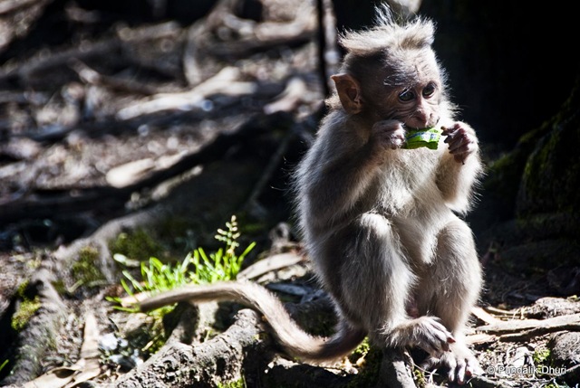 The power of learning as a monkey runs to separate the candy from the wrapper.