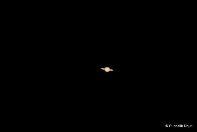 There is some fundamental problem with the photo as we could not focus on the planet with rings. The Saturn as seen with naked eye appears as a blip in the sky. But with the telescope, it looks quite better.