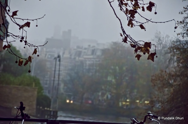 Fog covers Amsterdam in Winter