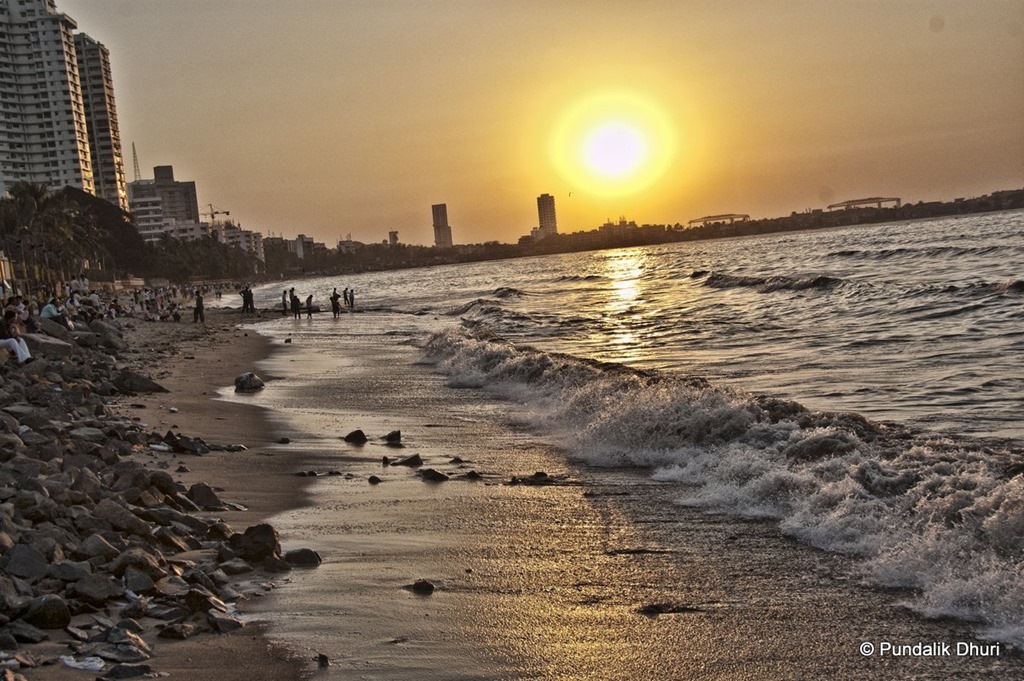 Tags: Building, Dadar Chowpathy, Dusk, Ocean, People, Silhouette, Strangers, Sun, Water