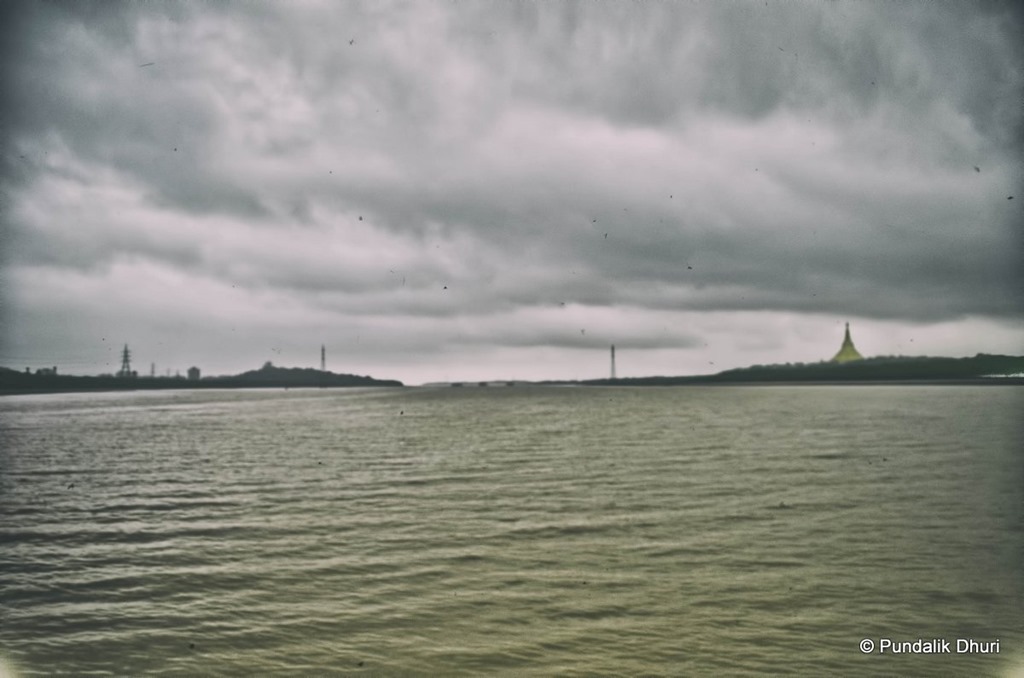 Tags: Building, Creek, Global Pagoda, Gorai Creek, Monsoon, Sky, Water