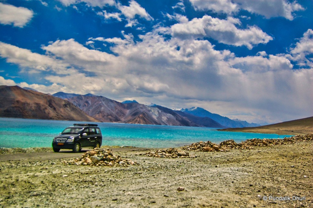 Category: Lake/Pond, Leh-Ladakh, Mountains, Sky/Aasmaan, Transportation, Water